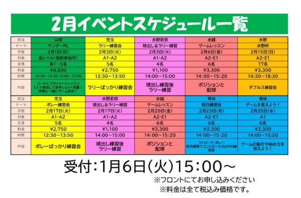 2月個別イベント一覧表