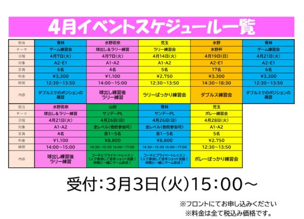 4月個別イベント一覧表