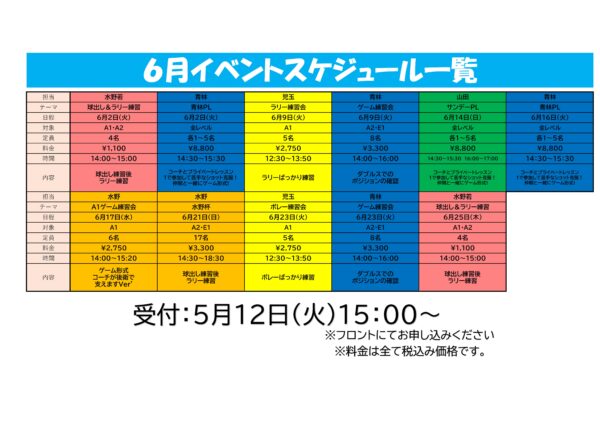 6月個別イベント一覧表